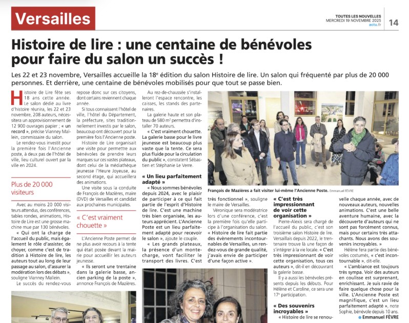 Article revue « Toutes Les Nouvelles de Versailles » du 19/11/2025.